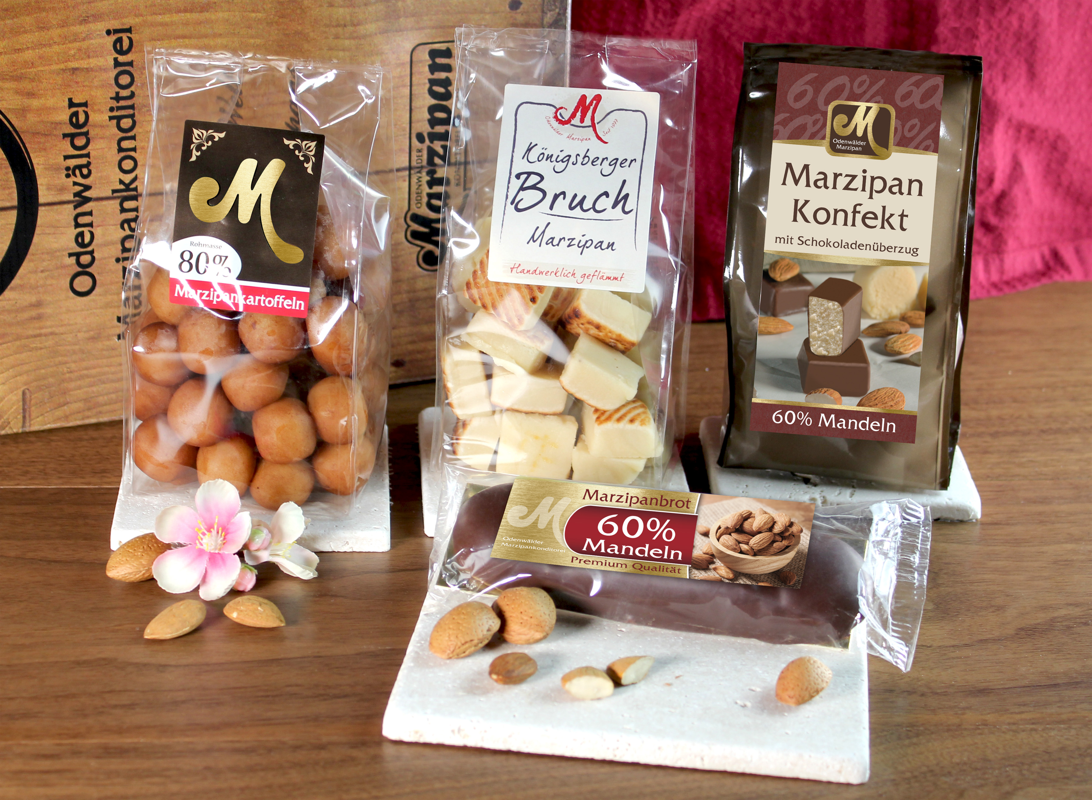 Die fünf kleinen Marzipanbrote mit Zartbitterschokolade laden zum Teilen ein, können aber auch alleine vernascht werden.