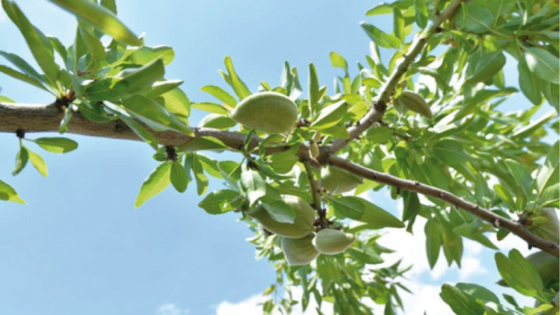 Von März bis Juni reifen die Mandelkerne und wachsen zu ihrer vollen Größe heran, während sich die Schale rund um den Kern verhärtet. Wenn die Tage heißer werden, beginnen die Farmer mit der Bewässerung ihrer Plantagen, um das Wachstum der Mandeln zu unterstützen.