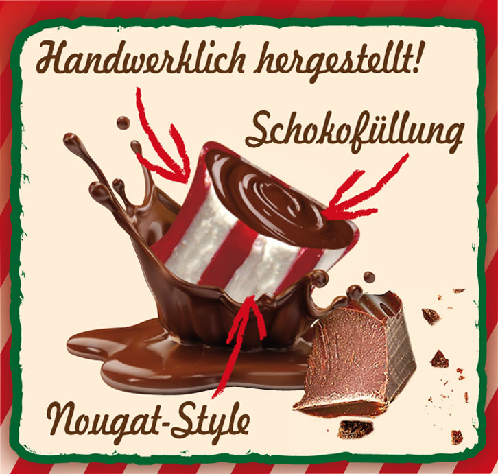 Merry Christmas Bonbons mit Nougatfüllung - Festliche Versuchung in jedem Biss: Unsere Merry Christmas Bonbons verbinden zarten, glatten Nougat mit einem Hauch von süßer Weihnachtswärme.